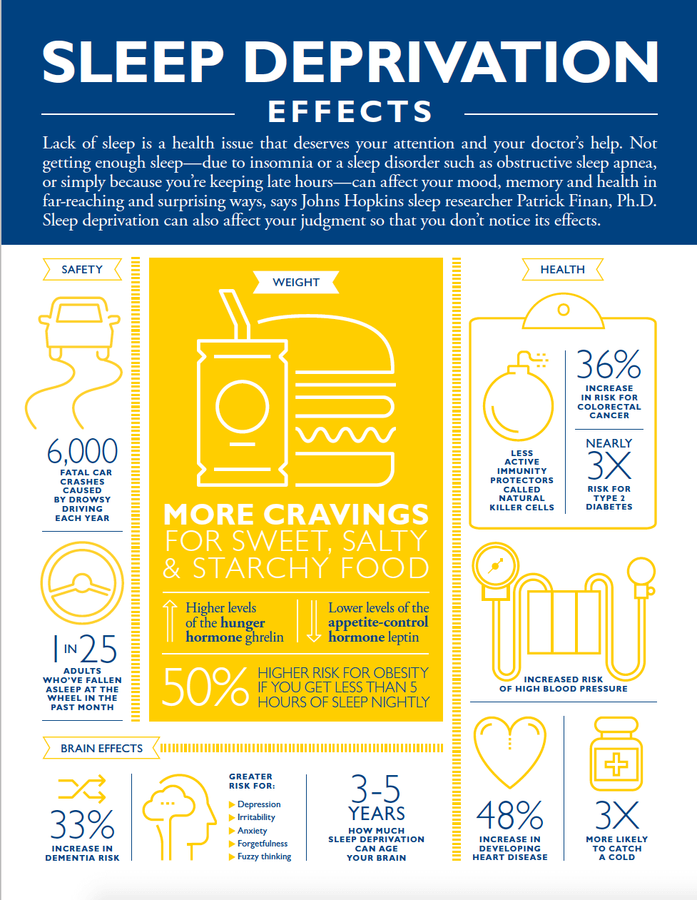 I humbly suggest you refer to this eye-opening infographic by Johns Hopkins Medicine to learn more about the effects of sleep deprivation.